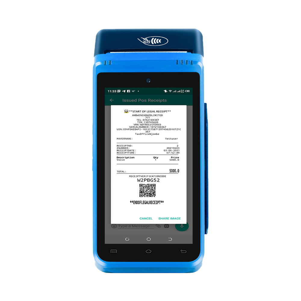 Devices Configered POS machine Built in Printer which enables printing receipt as hardcopy or sharing as file(PDF) and as Image